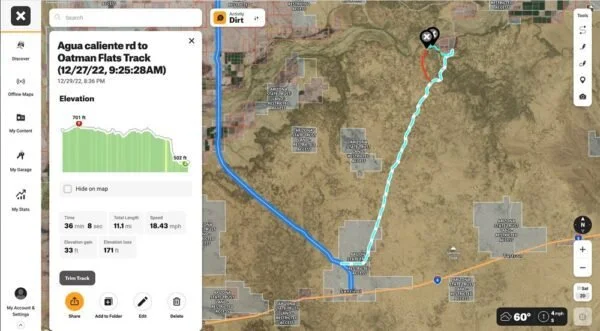 2. At South Agua Caliente Rd. Head north a short stint to a dirt road on the right named “South Oatman Road”.