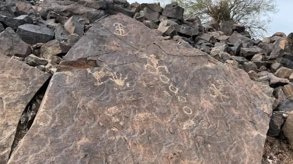 The Gila River served many groups from native Americans to pioneers alike as a source of water and food as people migrated west. One place evidence of both groups is still prominently etched into the volcanic earth is the Oatman Massacre Site.